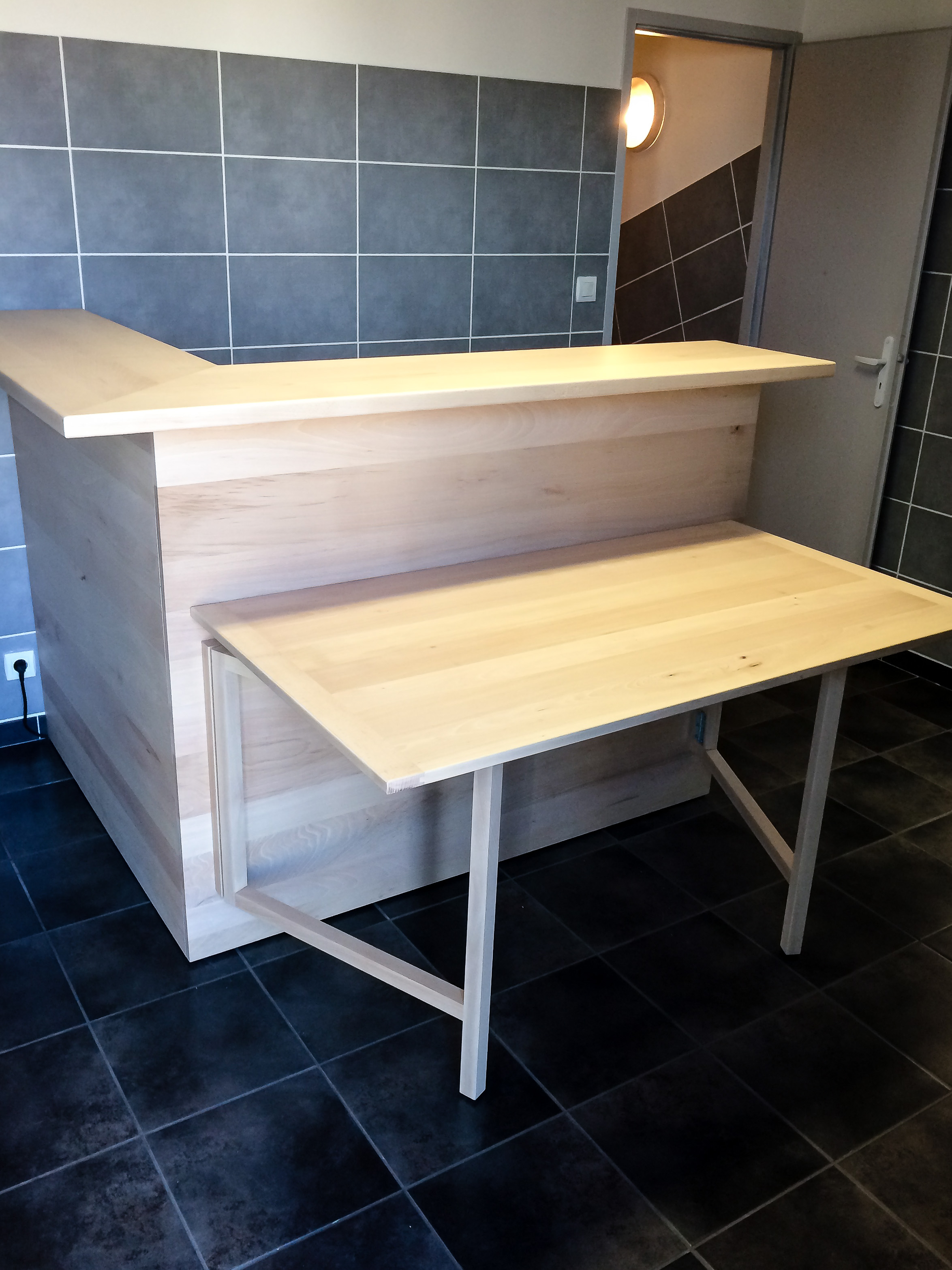 Super contents ! Nous avions un besoin un peu spécifique : créer un plan de travail qui soit également un meuble télé/hifi/bibliothèque… nous avions fait des plans mais il nous fallait un bon menuisier pour la réalisation, ce que nous avons trouvé chez Boiserie Concept ! Philippe et Ludovic ont été à l’écoute et nous ont très bien conseillé sur le choix du bois, nous ont proposé différents coloris et même fait des tests de vernis pour nous rassurer sur l’intégration de notre meuble à la cuisine existante. Contact très sympa et prix abordable, nous sommes très satisfaits !